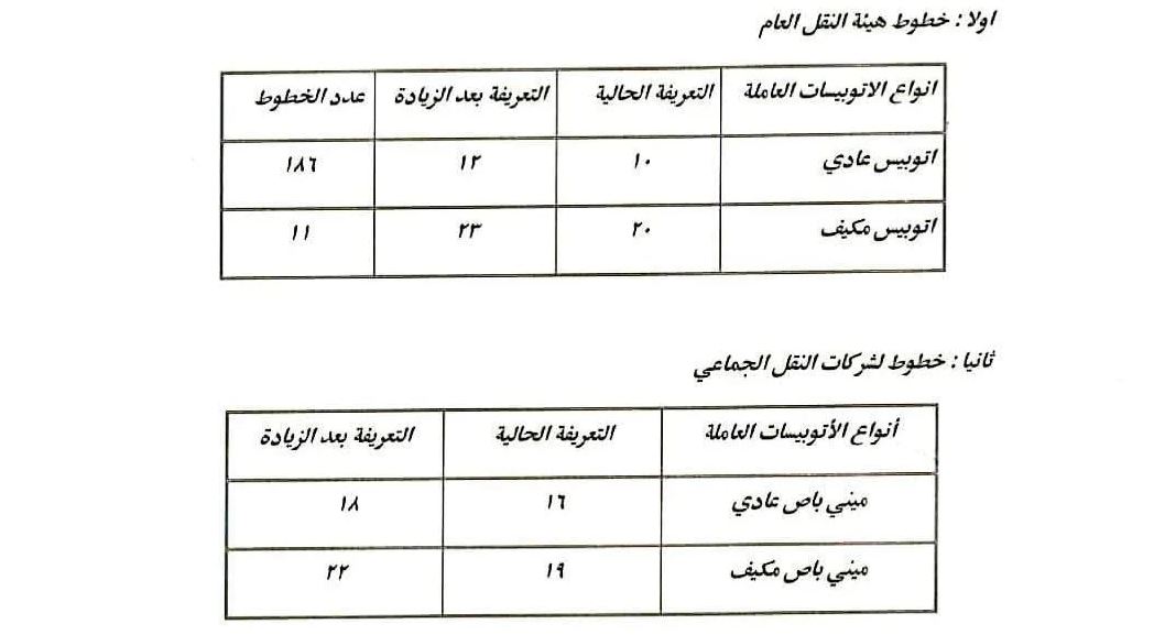 عدلت محافظة القاهرة، تعريفة ركوب سيارات النقل الجماعى والعام وذلك ضمن تعديل أجرة تعريفة ركوب سيارات الأجرة، فى ضوء صدور قرار تعديل سعر البنزين والسولار.