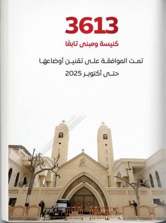 في إطار جهود الدولة لترسيخ قيم المواطنة وتعزيز أسس الوحدة الوطنية، تواصل اللجنة المُشكَّلة برئاسة رئيس مجلس الوزراء عملها في تقنين أوضاع الكنائس ومبانيها التابعة، بما يكفل المساواة الكاملة في الحقوق واحترام سيادة القانون.